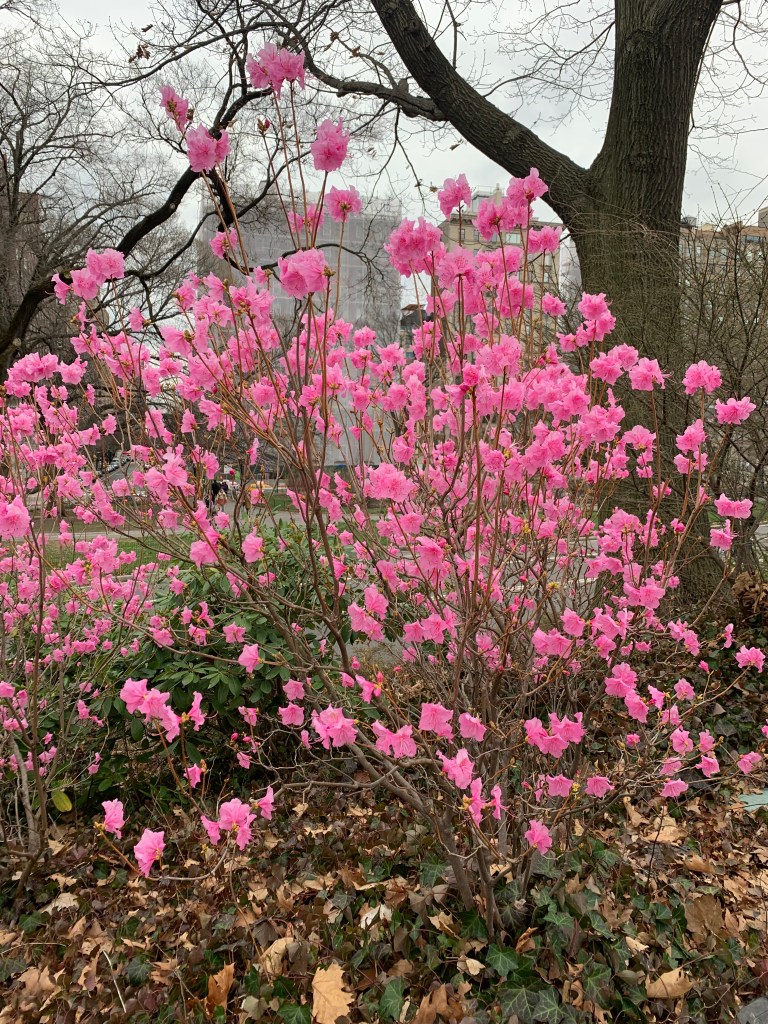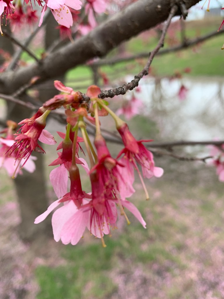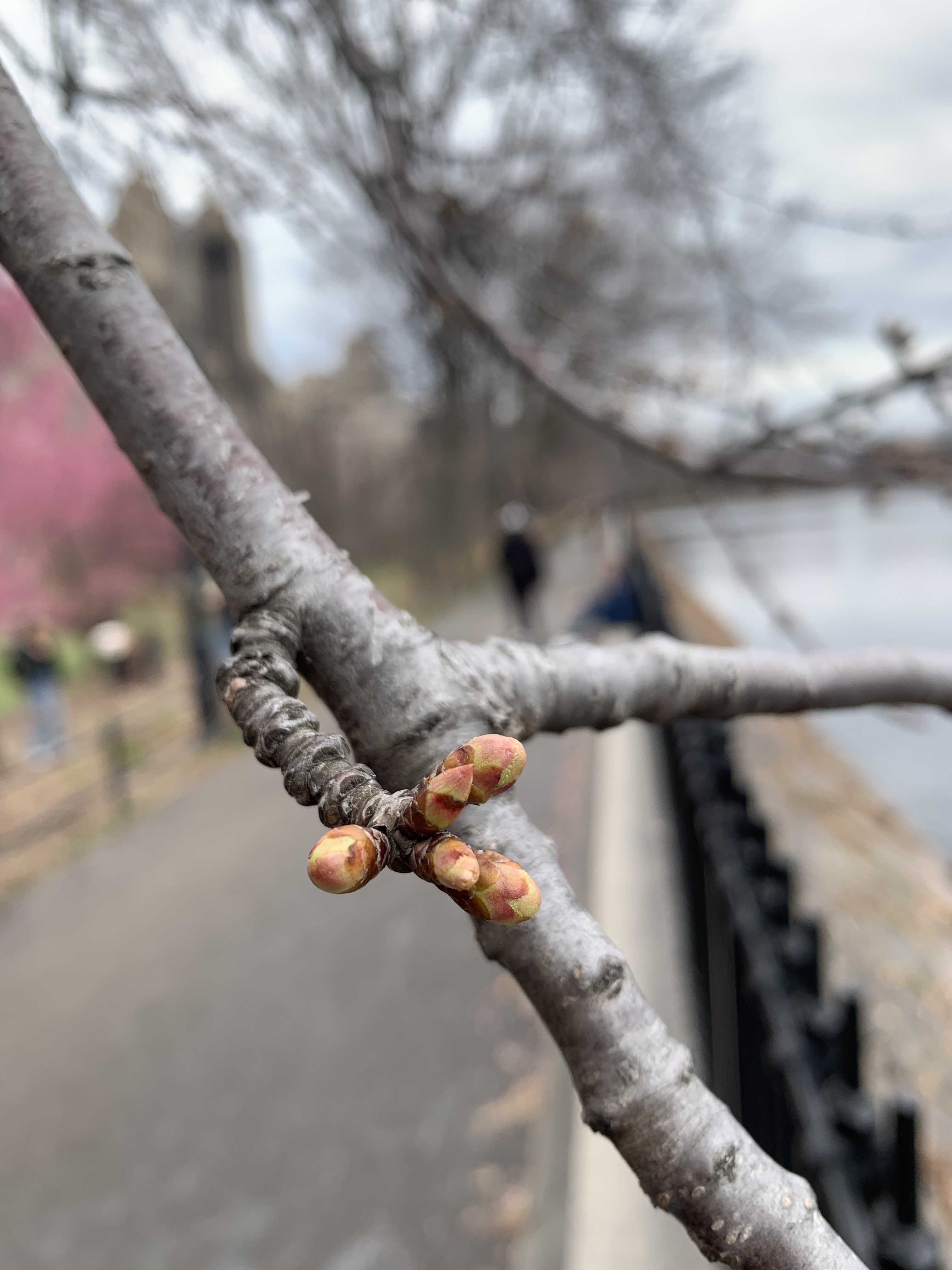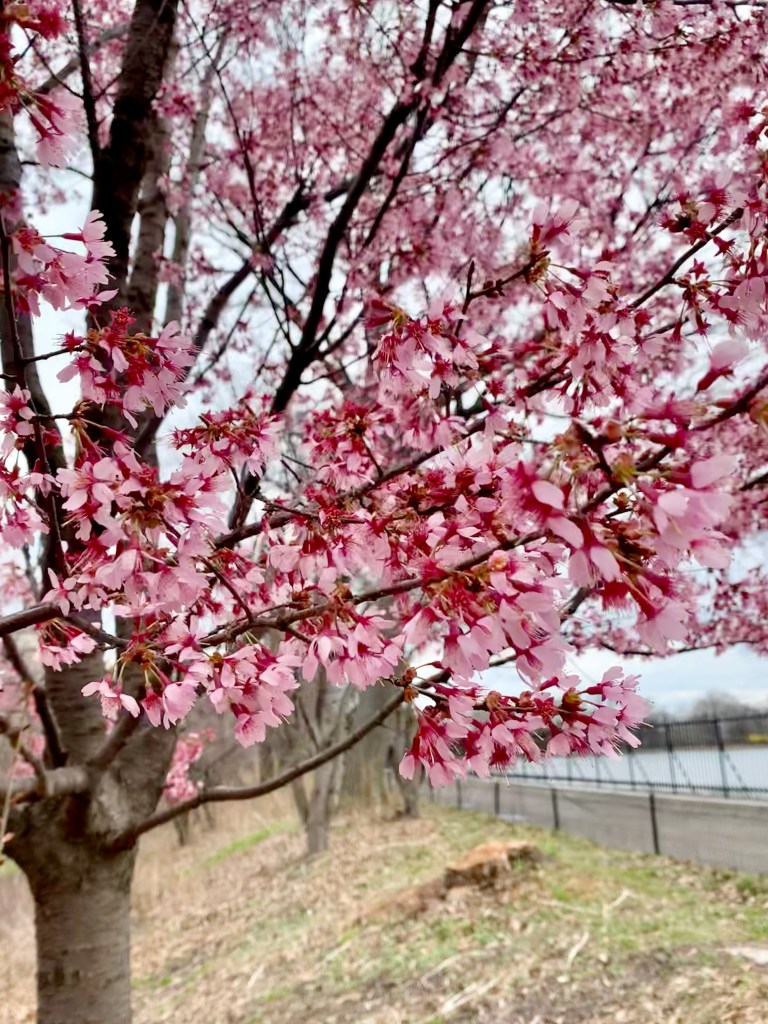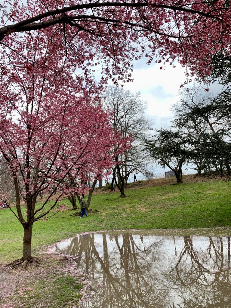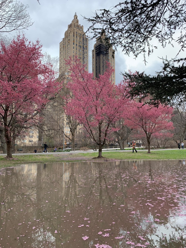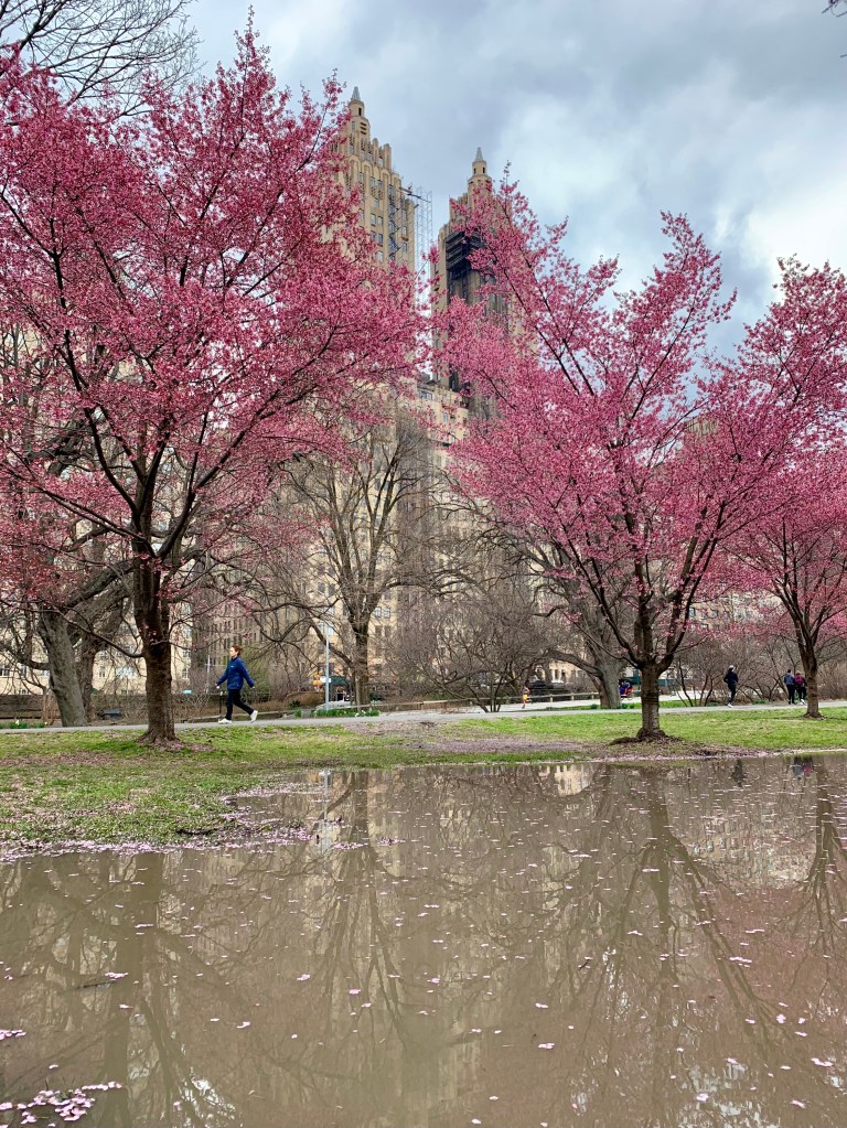 I visited Central Park to see the Okame cherry trees on the west side of the great lake (Jacqueline Kennedy Onassis Reservoir).