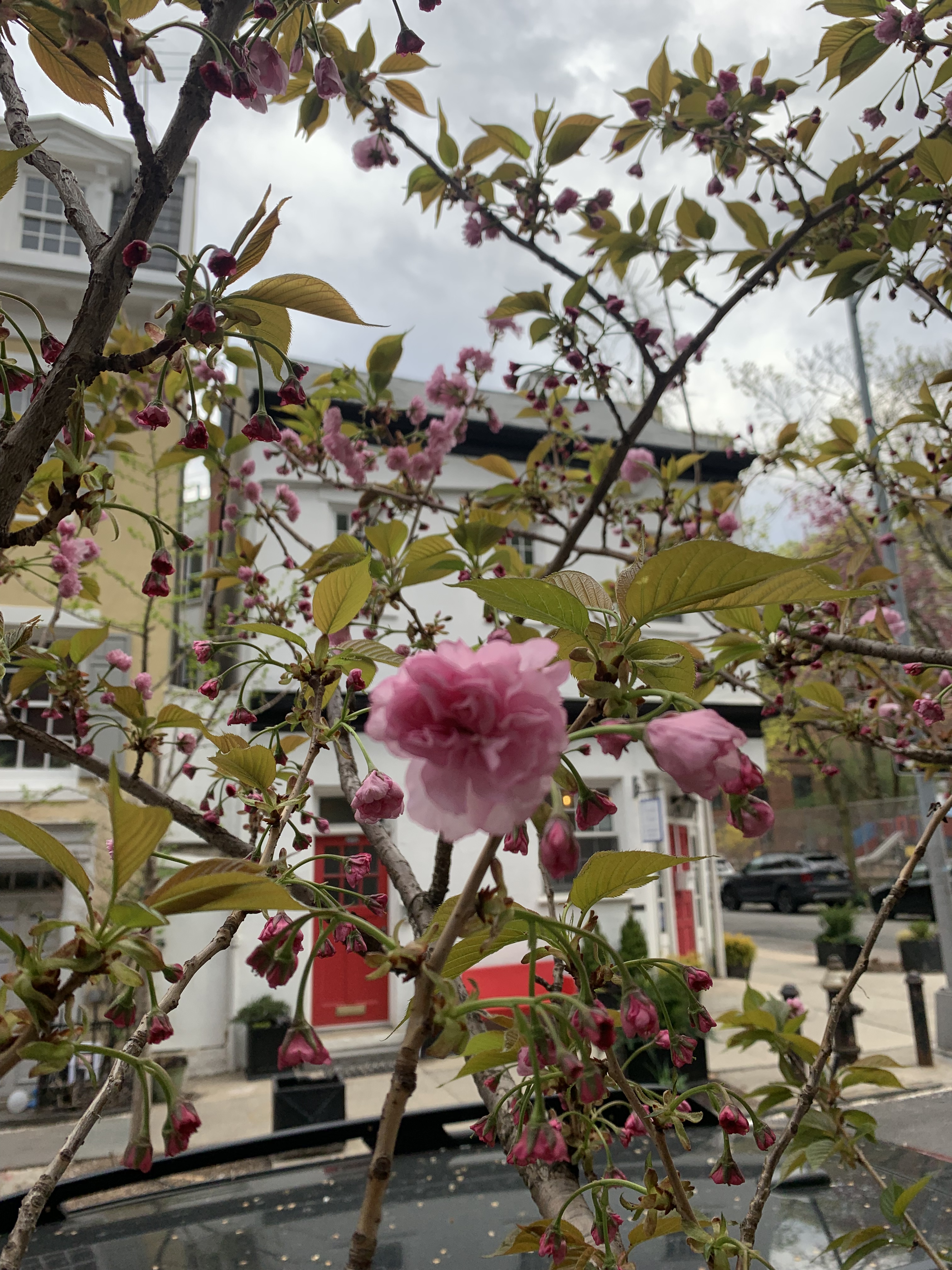 Kwanzan Cherry are in full bloom in most places In the city. However, the ones in the Brooklyn Botanic Garden are still in their pre-bloom stage, according to their cherry watch page.