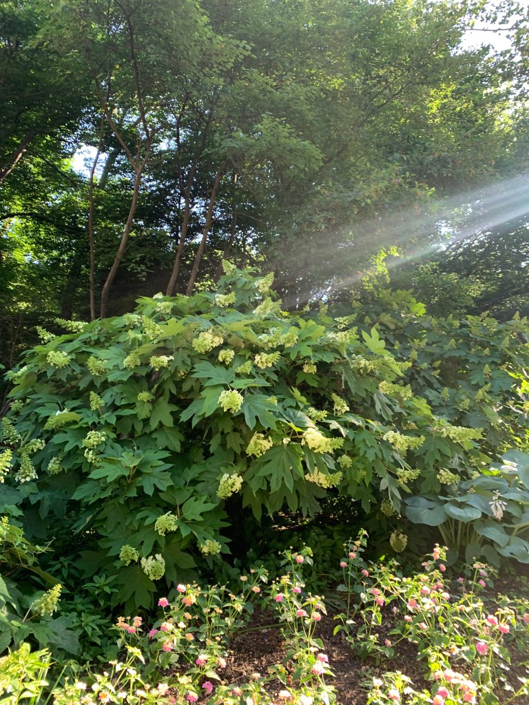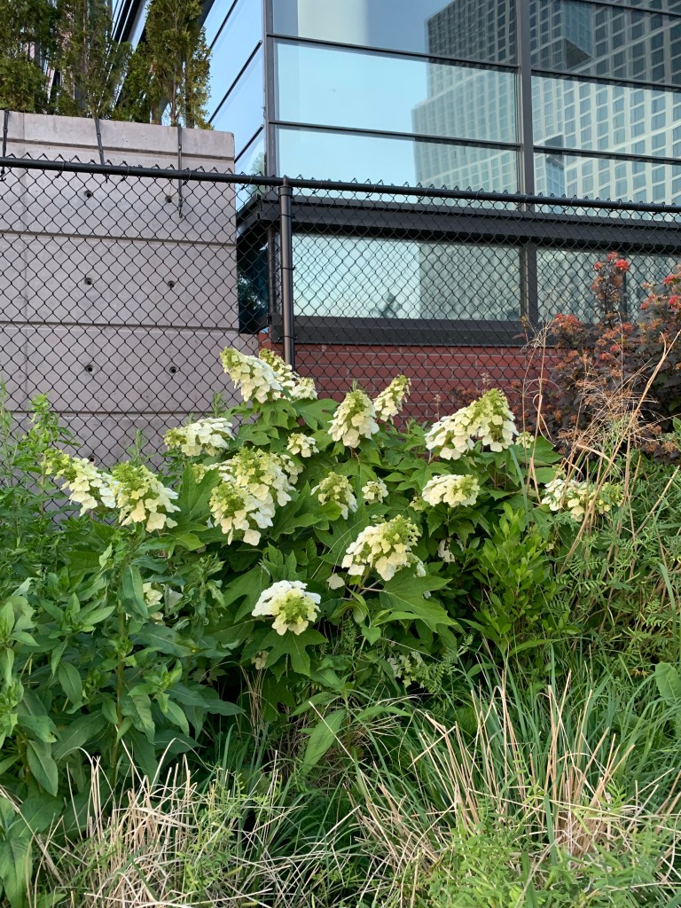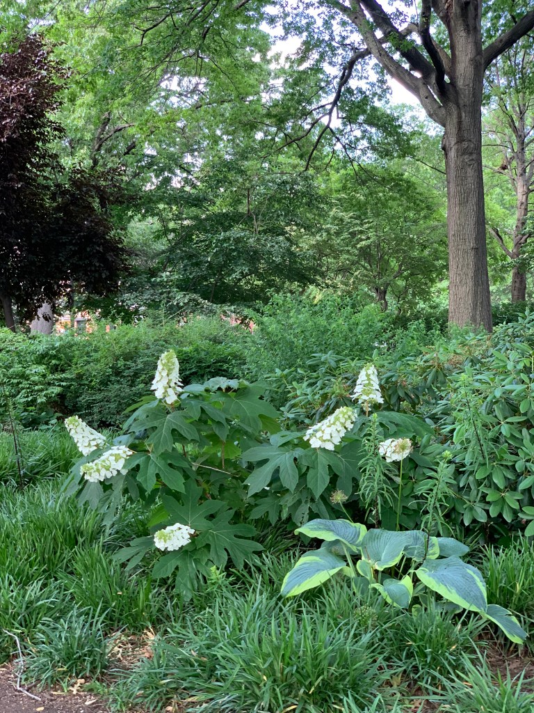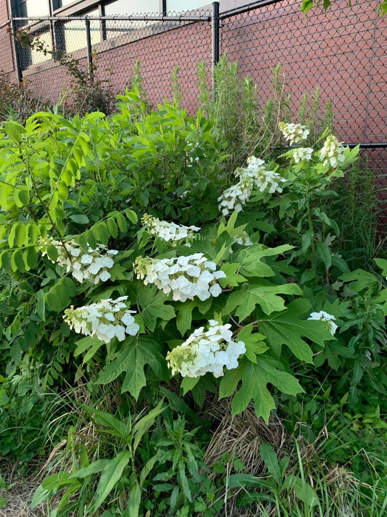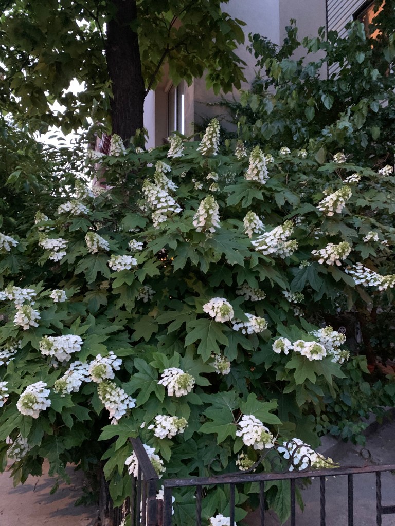 You can find Oak Leaf Hydrangeas with beautiful white flowers around the city, and they are in full bloom.