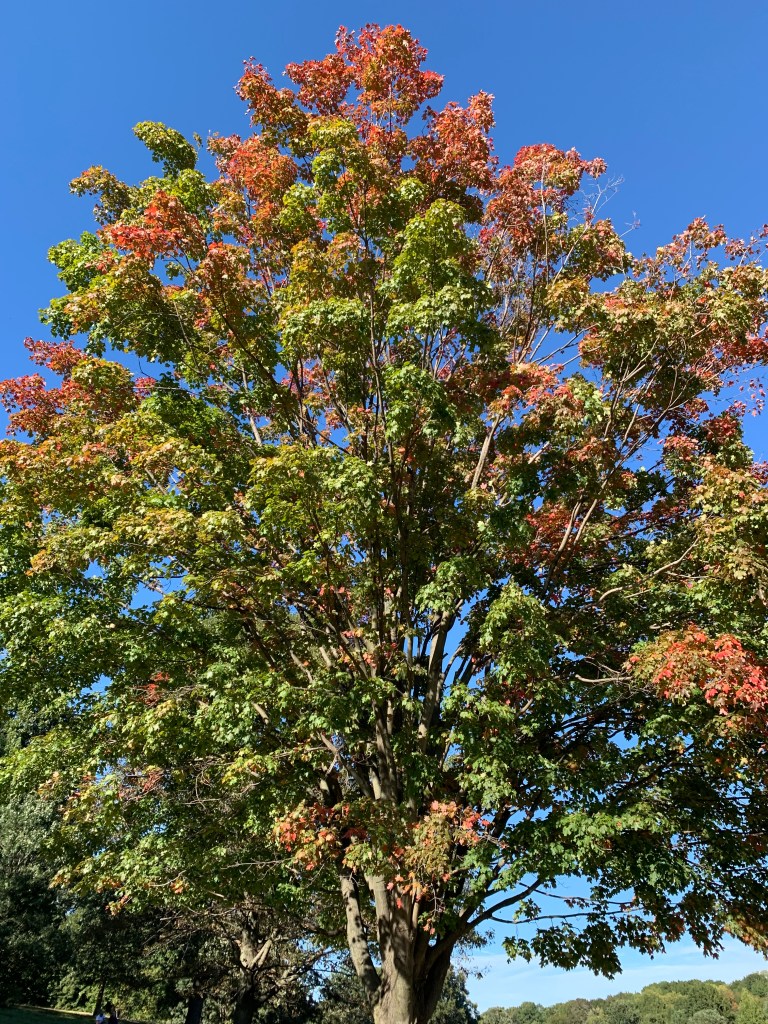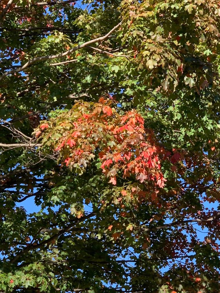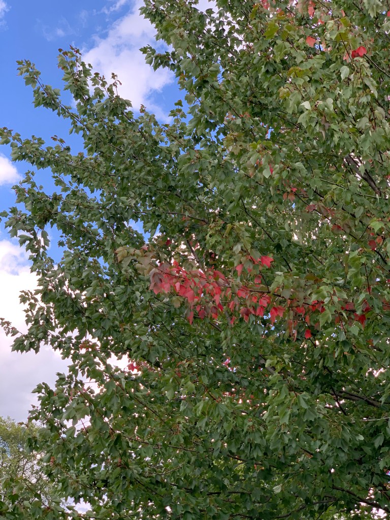 Red maples are the first to bloom in spring and are the first to give us some colors. You can spot the top leaves changing nicely from green to red. Silver maples are also spotted with some beautiful red leaves.