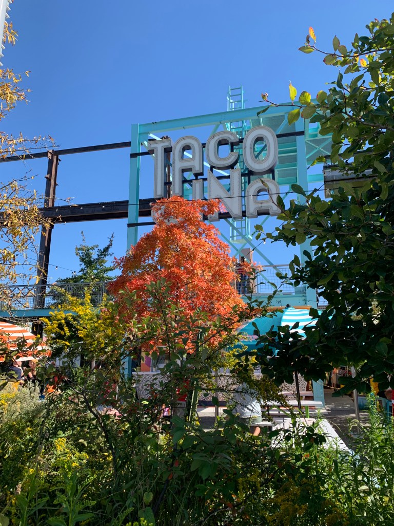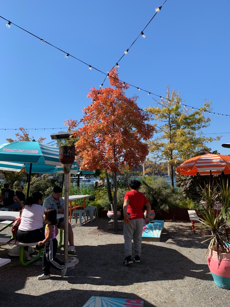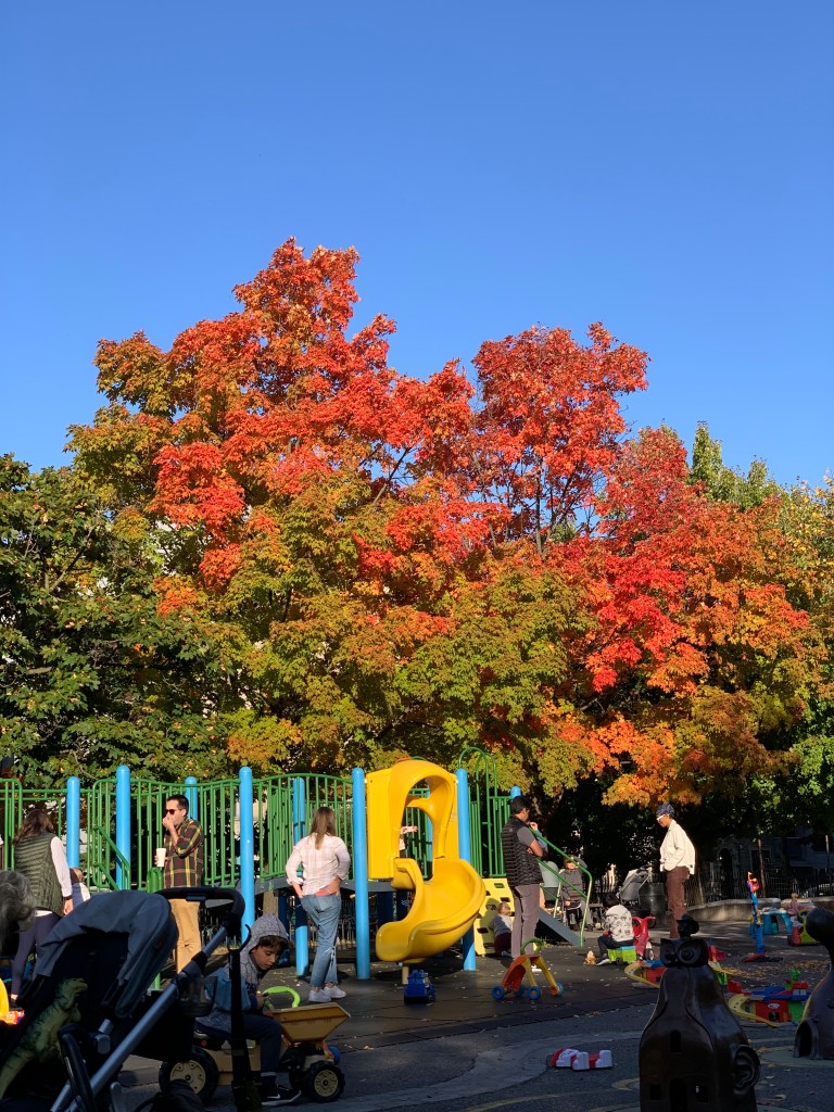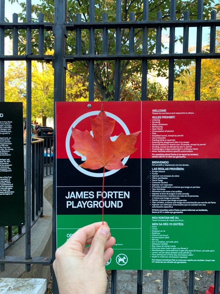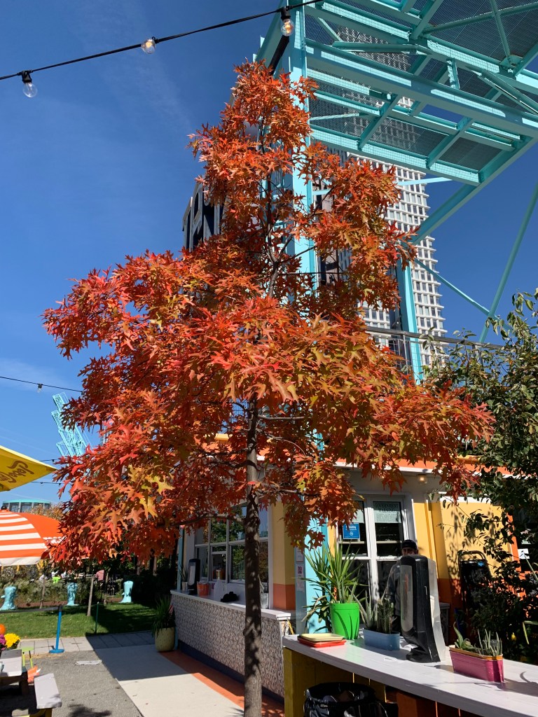 Domino park is a lovely public park along the Williamsburg waterfront. It is named for the former Domino Sugar Refinery. It is a beautiful place where you can see a wide variety of trees, a wonderful place to catch the fall foliage.