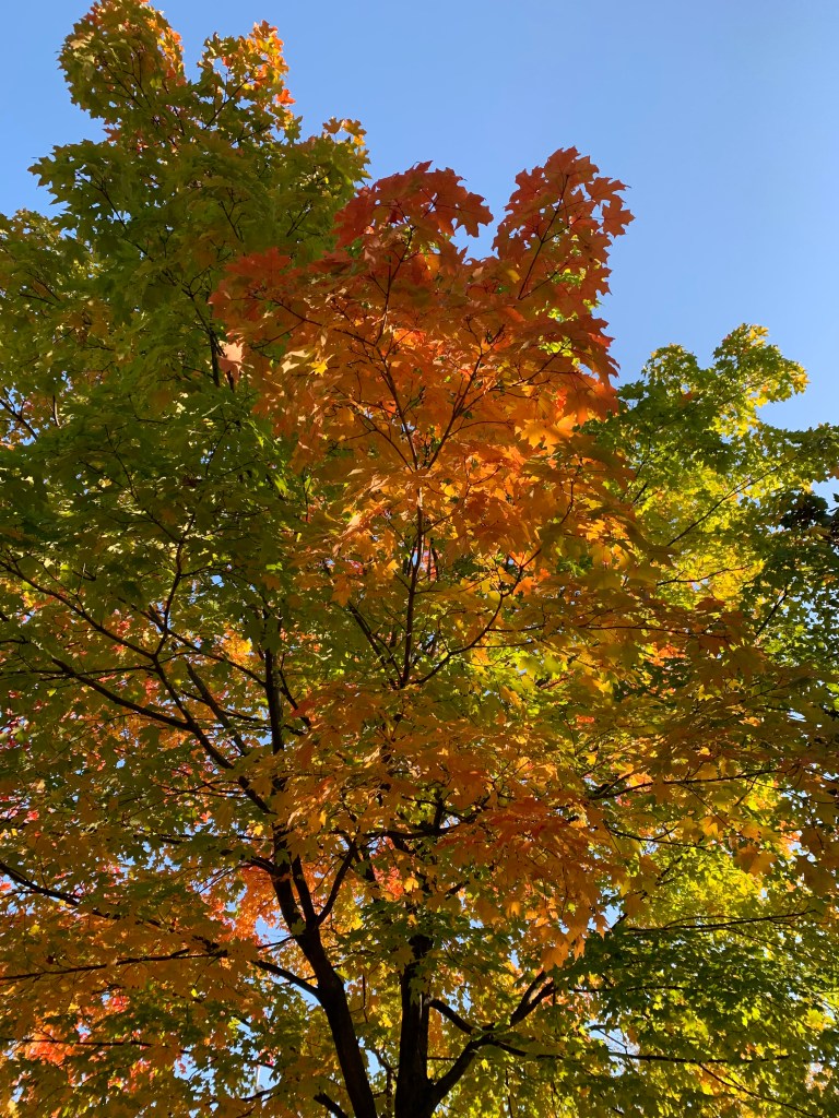 Red and Sugar maples are reaching their peak color these days and bring stunning colors to the streets.