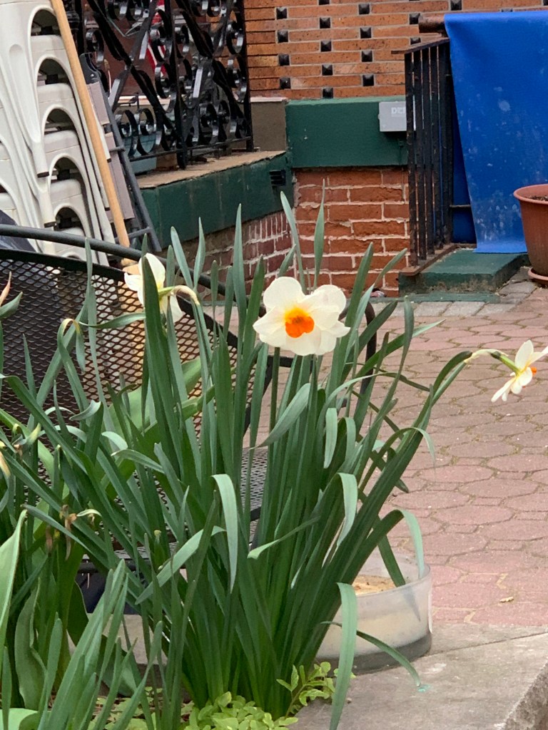 Daffodils can be found all around and they look beautiful. I even spotted a few early tulips. However, they were might being potted as flowers already. Here are some pictures I took yesterday at Greenpoint. You can also find a pretty heaping cherry half blooming.