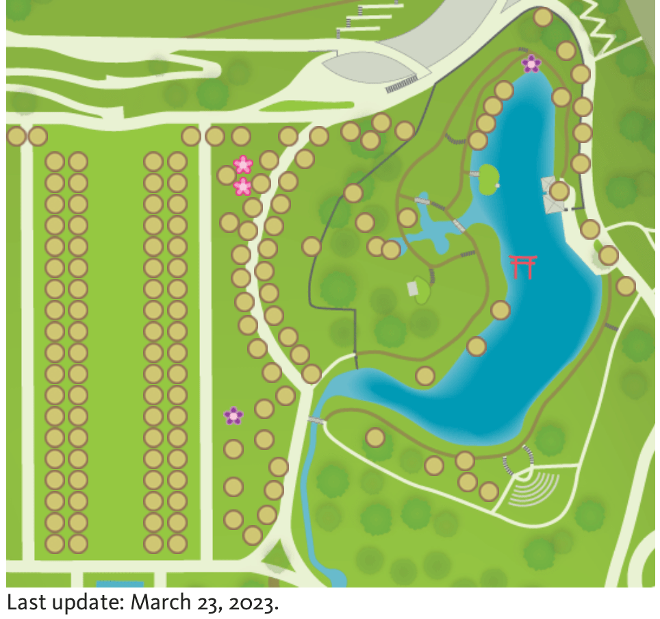 The Brooklyn Botanical Gardens has published its Cherry Blossom Map Track to see what’s in bloom around the Japanese gardens: