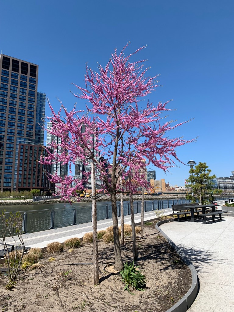 Prospect Park (Brooklyn): Look for redbuds scattered throughout the park, often adding pops of pink along pathways and woodland edges.