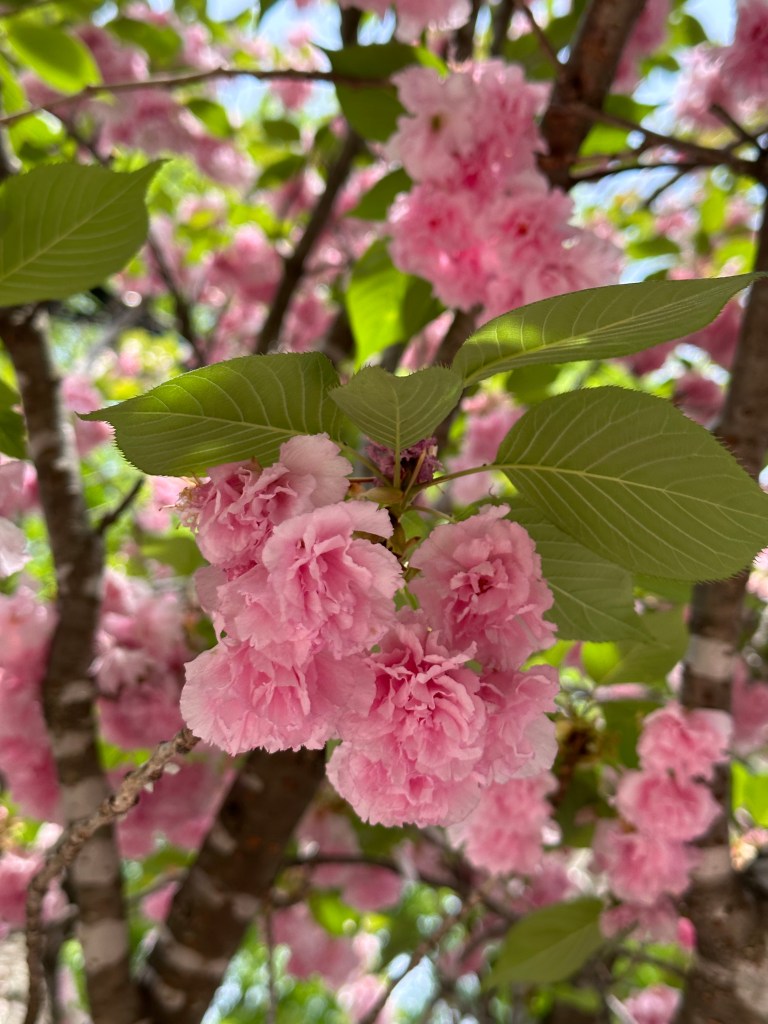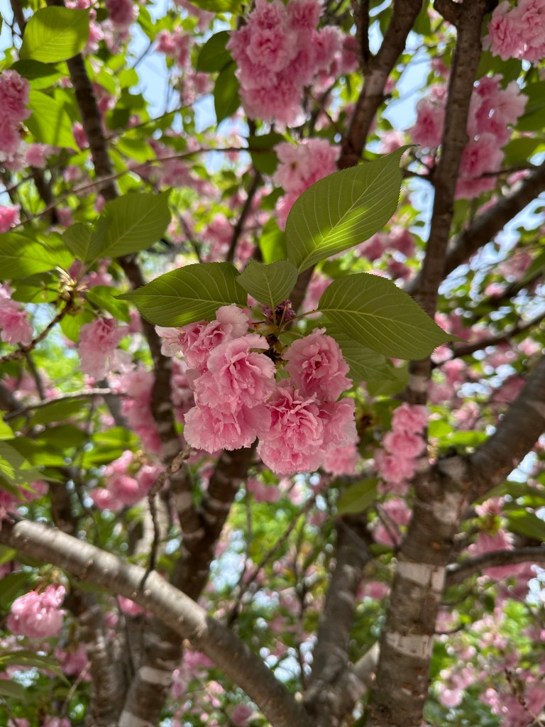 Just as the earlier cherry blossoms fade, the magnificent Kwanzan cherry trees are now reaching their peak bloom. These ornamental cherries are known for their large, fluffy, double pink blossoms that create a spectacular visual impact.