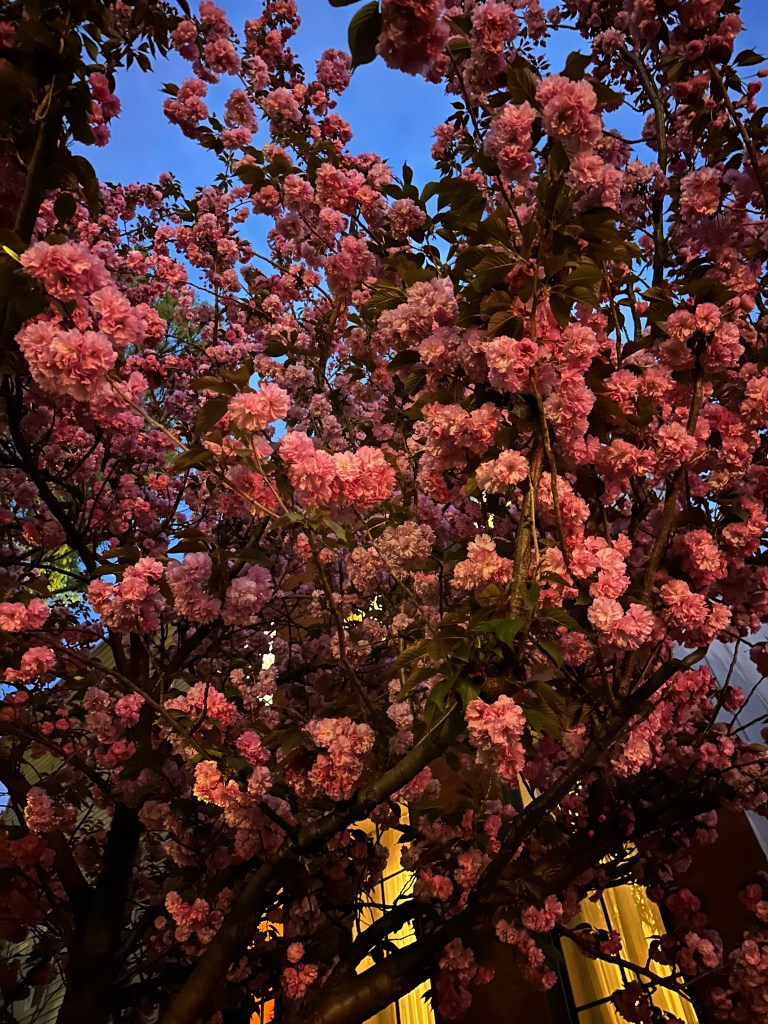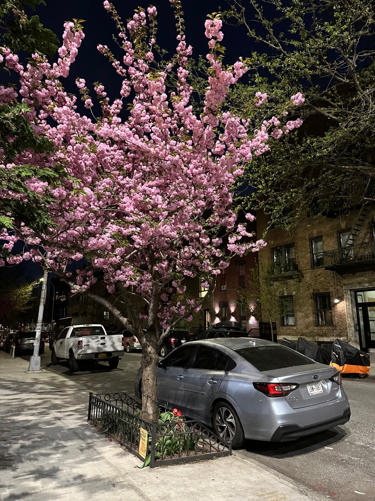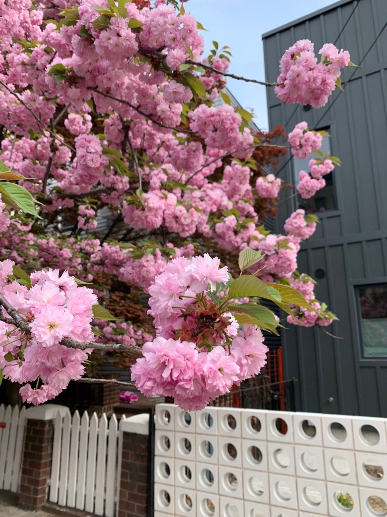 A Bit About Kwanzan Cherries: A popular cultivar of Japanese flowering cherry, Kwanzan trees are prized for their showy, long-lasting blooms and their upright, vase-shaped form. They typically bloom a bit later than other cherry varieties, extending the cherry blossom season in NYC.