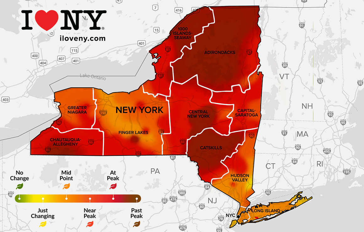 - NY – I love NY foliage report – This popular IG page with a website gives a weekly report on the foliage progression around NY state. Reports are obtained from volunteer field observers and reflect expected color conditions for the coming weekend. Reports are issued every Wednesday afternoon.